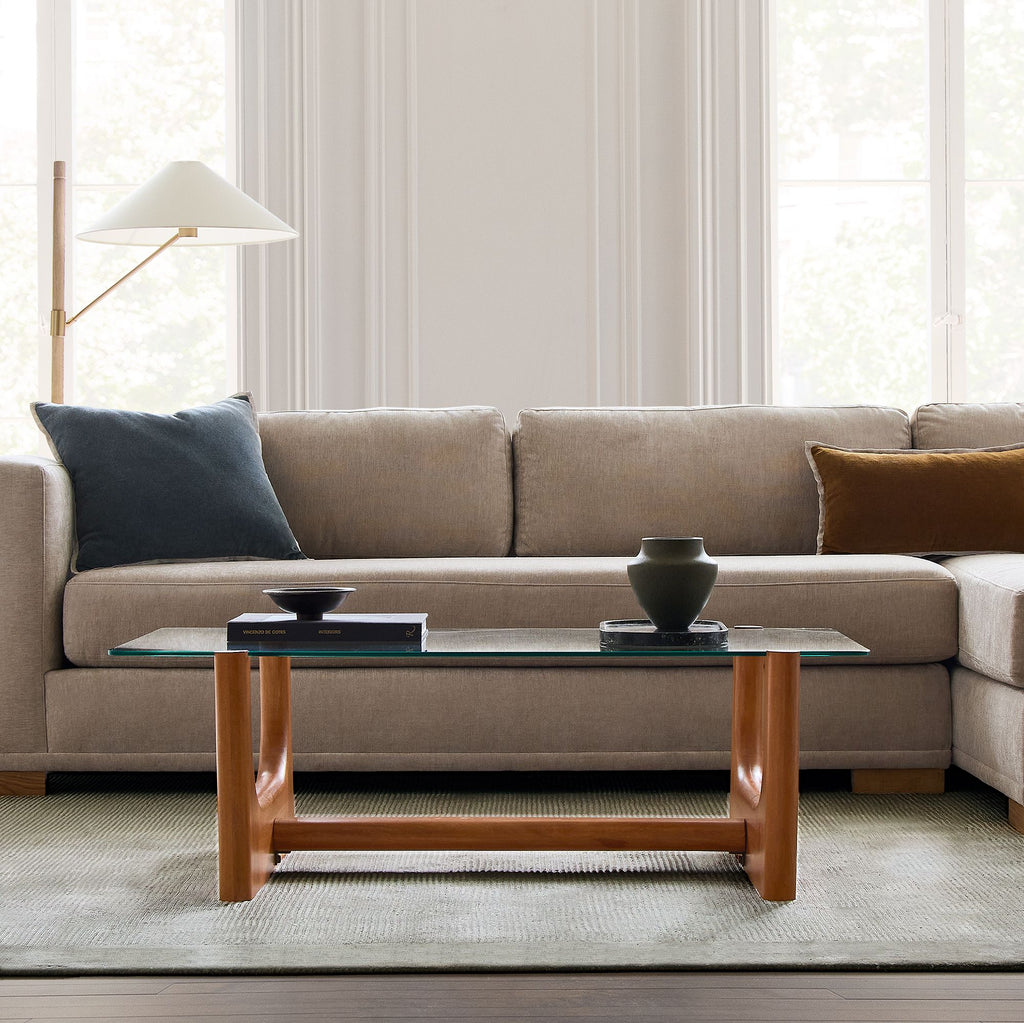 The HARPER COFFEE TABLE combines a sleek, airy tempered glass top with U-shaped legs crafted from solid, sustainably sourced mango wood. Its thoughtfully curved base adds sculptural elegance, while the light glass surface provides a delicate balance. Crafted in a Fair Trade Certified™ facility and built to contract-grade standards, this table blends sustainability and durability with refined design—making it a lasting centerpiece for any sophisticated living space.