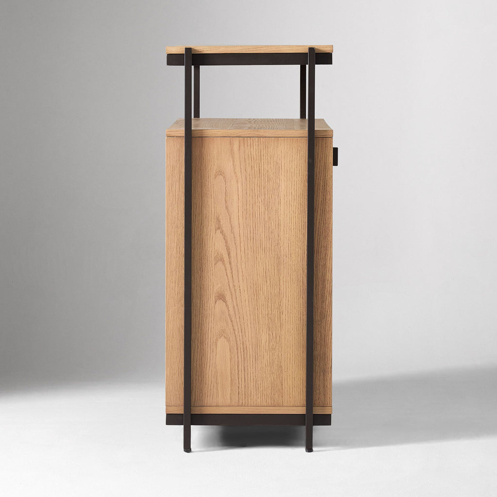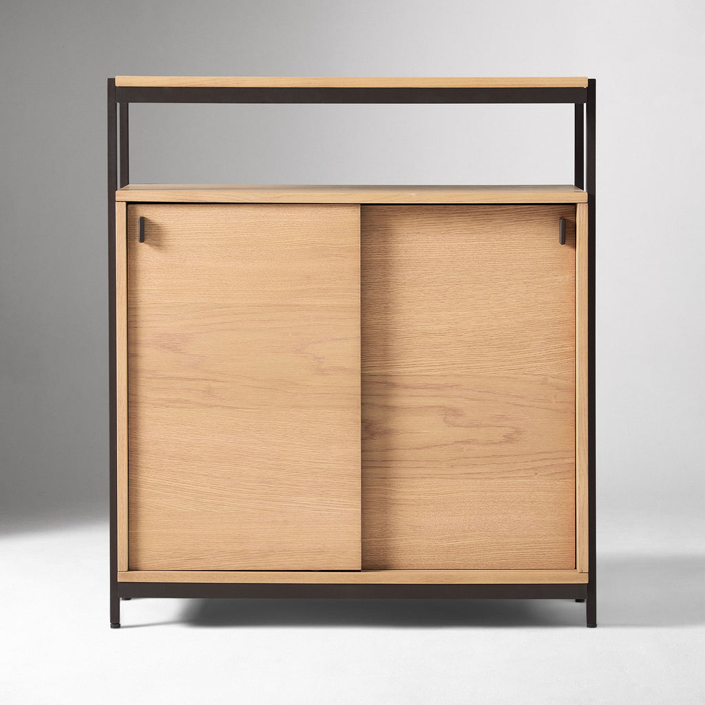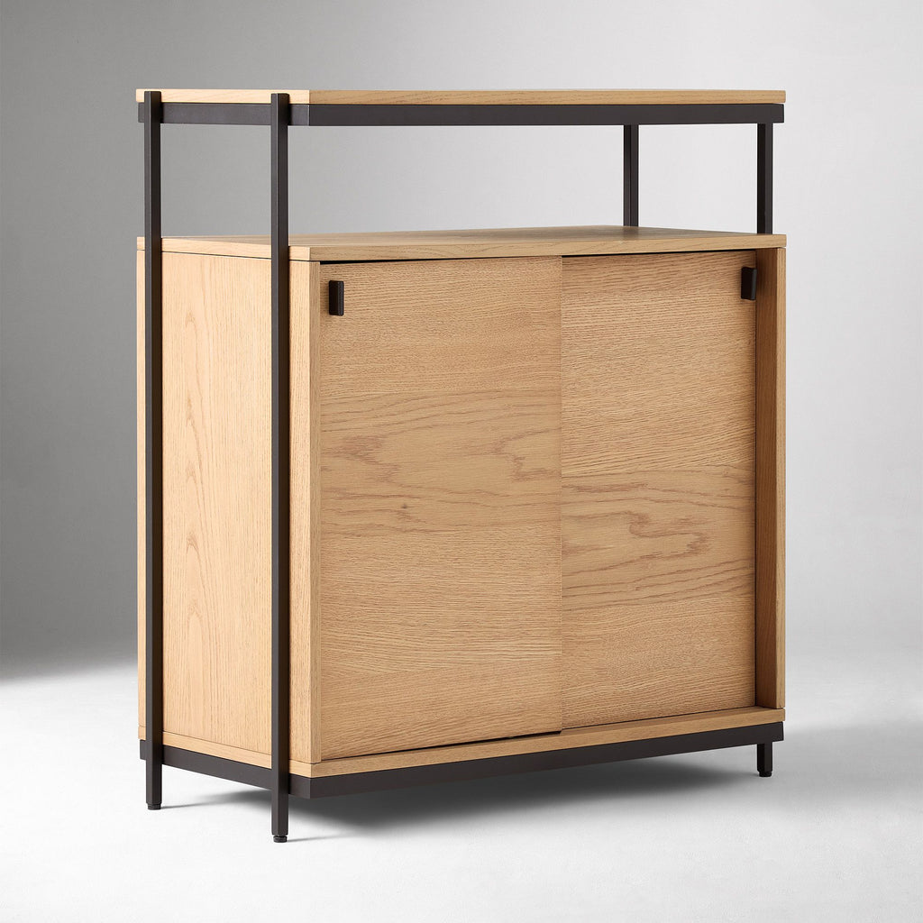 The PIERCE CABINET brings bold Scandinavian minimalism to any room that needs it. This isn't just another storage piece—it's a statement. The open shelf design lets you curate and showcase your favorite items while keeping clutter at bay. Built with Contract Grade durability, it's engineered to withstand real life. Whether you're anchoring an entryway, commanding a living room, or powering up an office, the Pierce Cabinet adapts to your space with fearless, contemporary style that refuses to blend into the background.