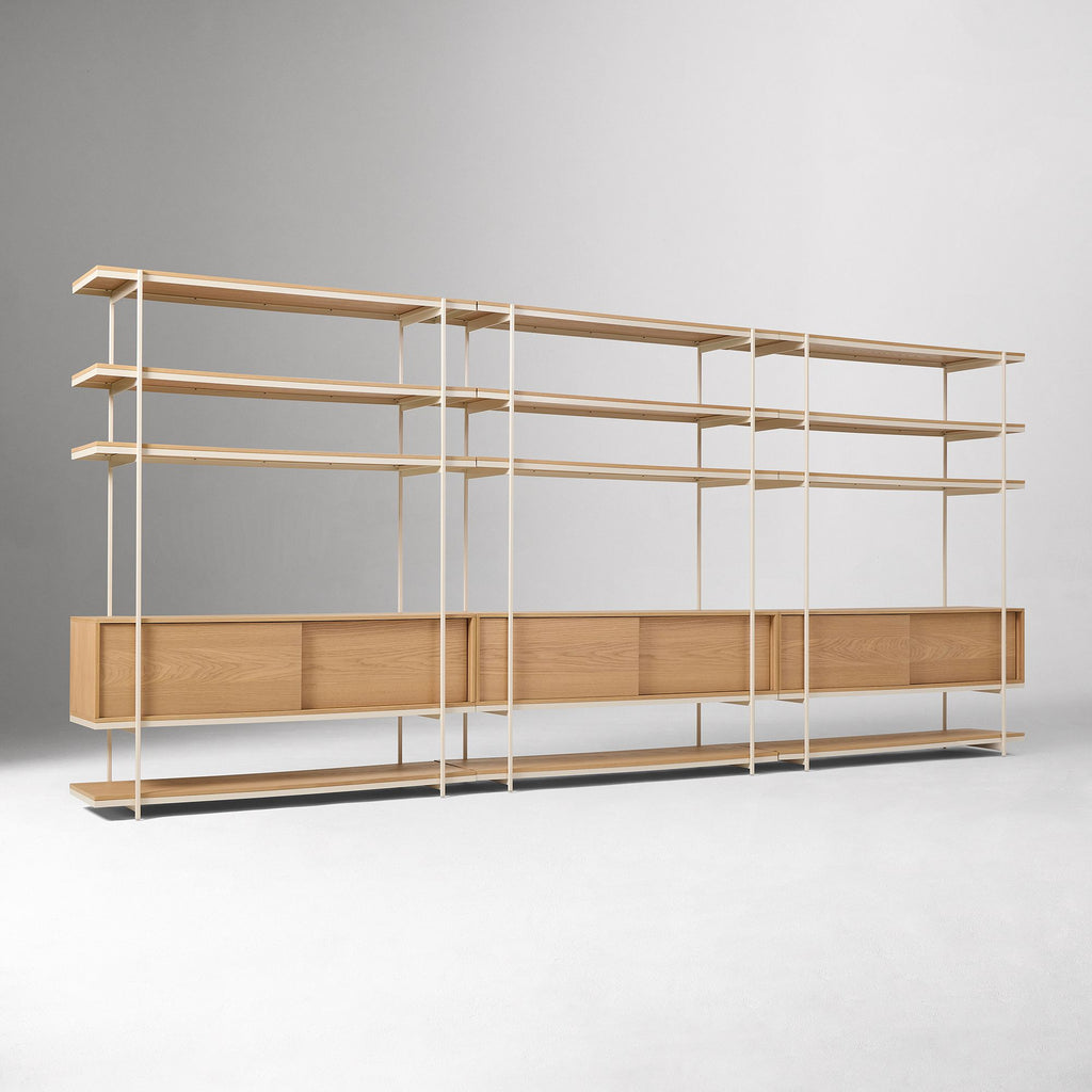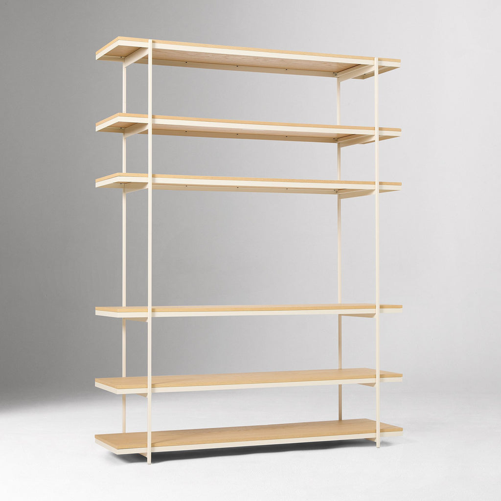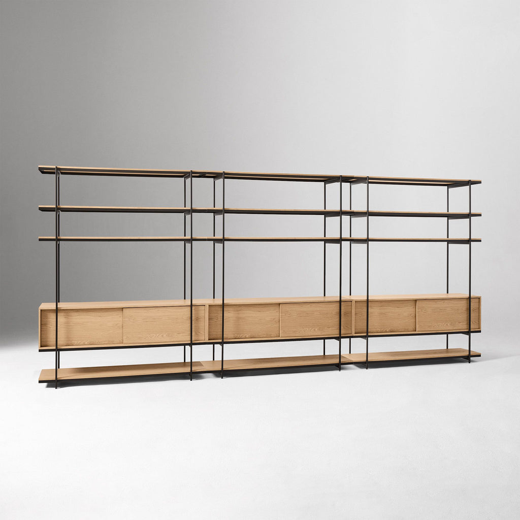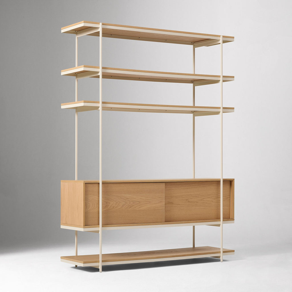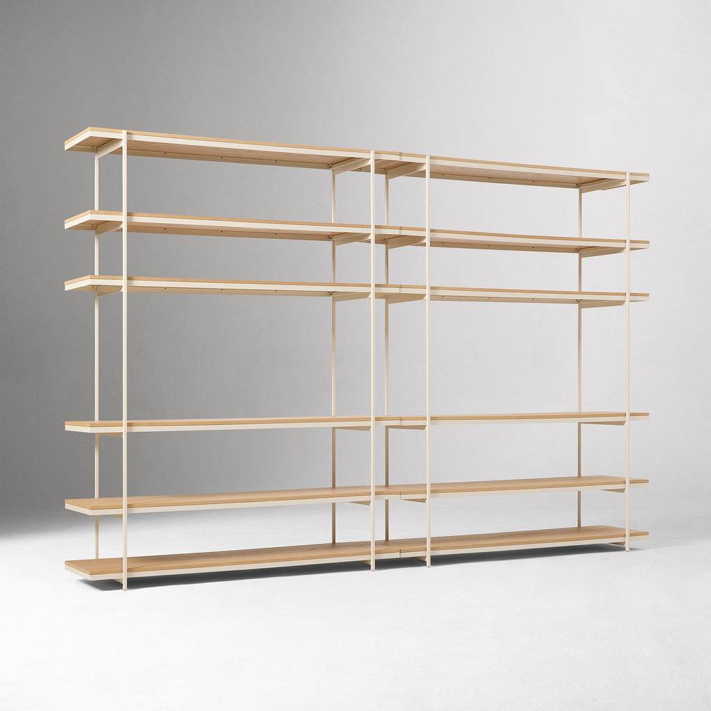 The PIERCE WIDE STORAGE SHELF UNIT brings understated Scandinavian elegance to any room. Crafted from kiln-dried wood and built to contract-grade standards, this shelving system combines durability with refined design. Choose from five versatile sizes to customize your storage solution, then select either sleek Black-finished metal for striking contrast or soft Putty for a cohesive aesthetic. Perfect for those who appreciate quality craftsmanship and timeless style.