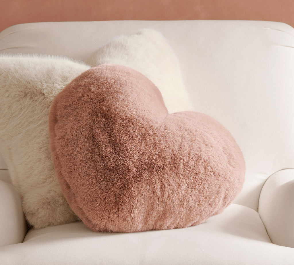 Transform any space with this elegant heart-shaped faux fur pillow in soft pink. Its plush, velvety texture invites touch while adding a refined accent to a girl's bedroom or living room. Constructed with sustainable 100% recycled polyester filling and securely sewn seams, this pillow combines comfort with conscientious craftsmanship. The yarn-dyed fibers deliver rich, enduring color that maintains its sophistication through everyday use.