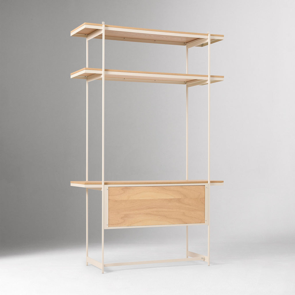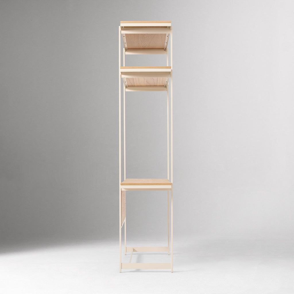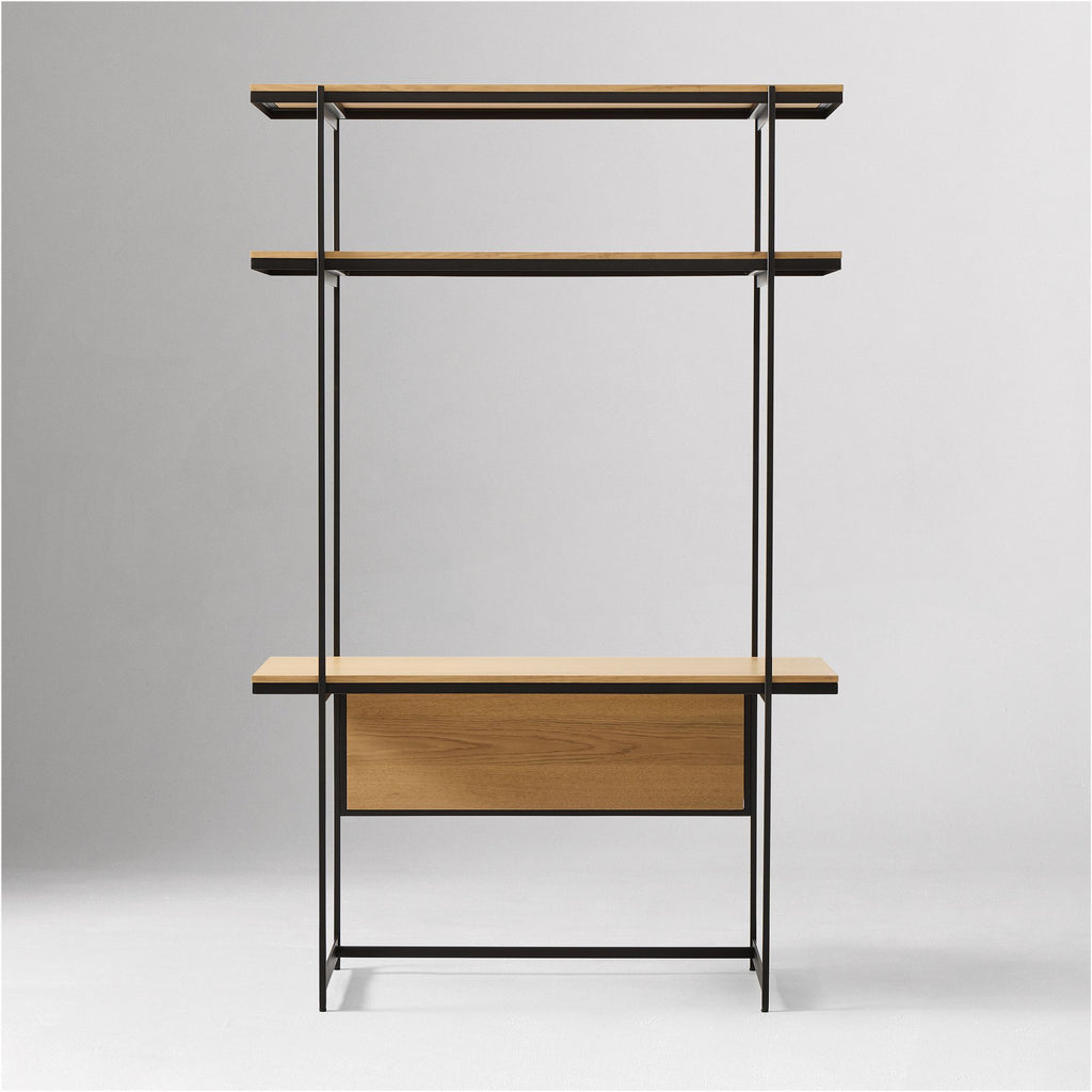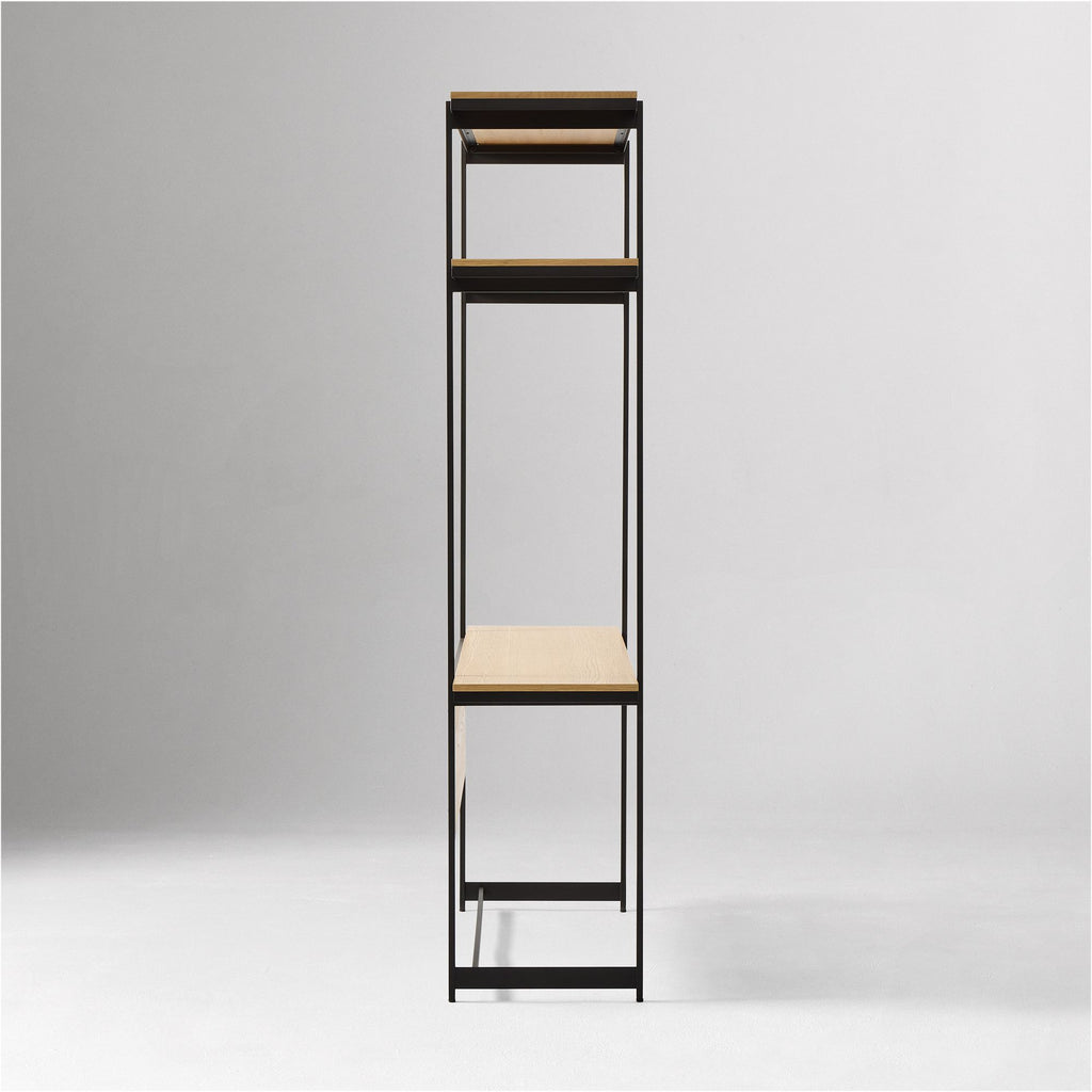MATERIALS: Metal frame and legs in a Black or Alabaster White finish. Oak veneer over engineered wood sides and shelves in a Blonde finish. All wood is kiln-dried for added durability.